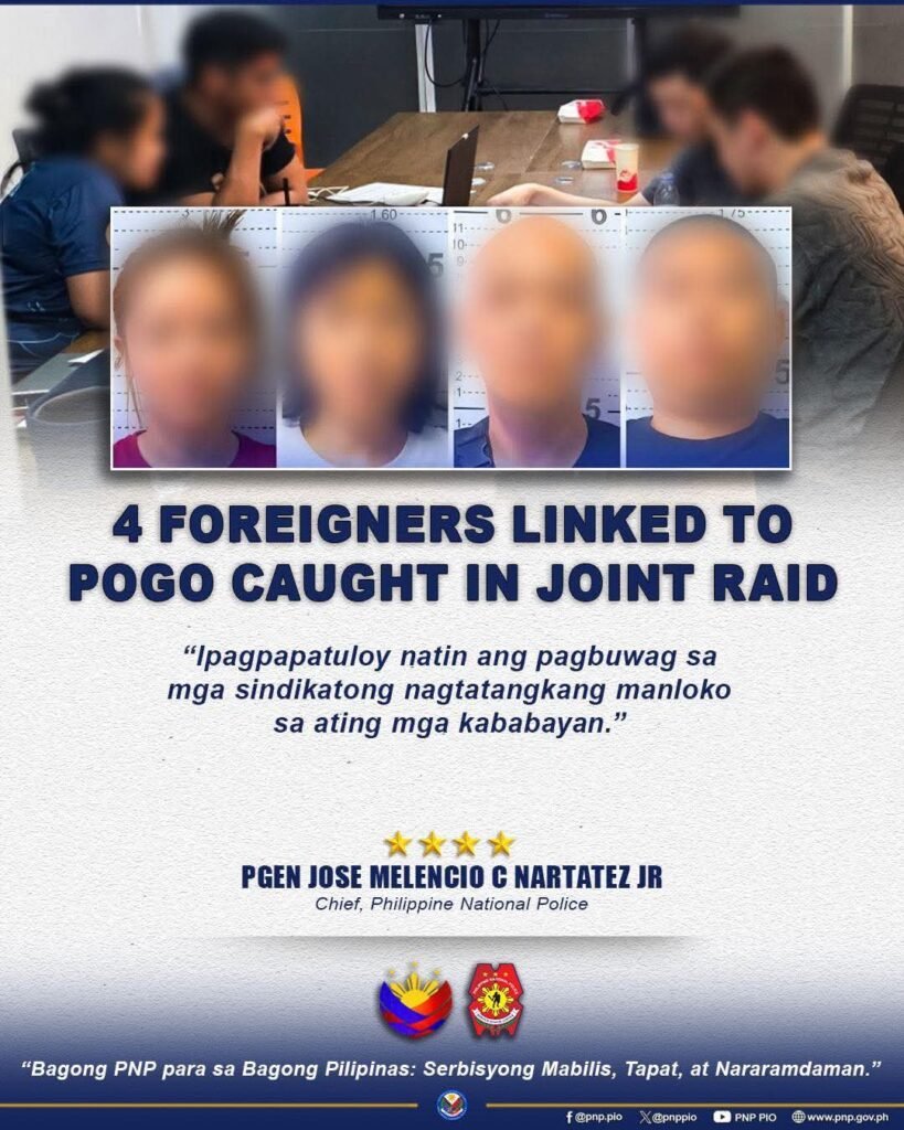 ANGELES CITY — The Bureau of Immigration (BI) arrested four foreign nationals allegedly involved in telecommunications fraud, online gaming scams, and other illicit activities in Angeles City.