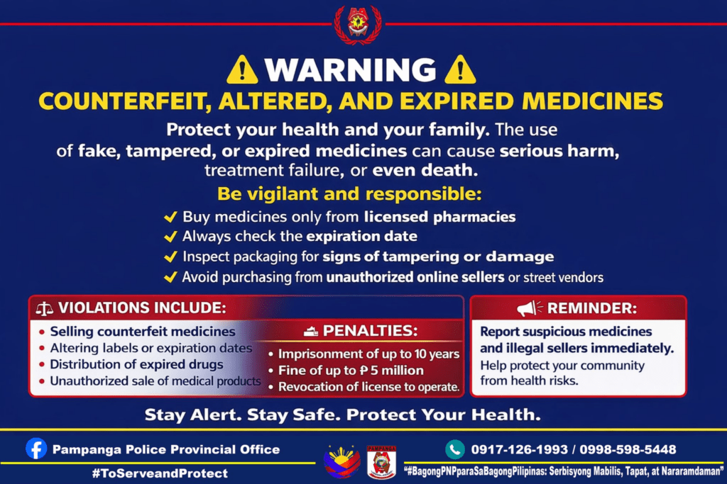 Hinihikayat ang lahat na bumili lamang sa licensed pharmacies, tiyakin ang expiration date at packaging ng gamot, at agad i-report ang mga kahina-hinalang bentahan sa mga otoridad. #
